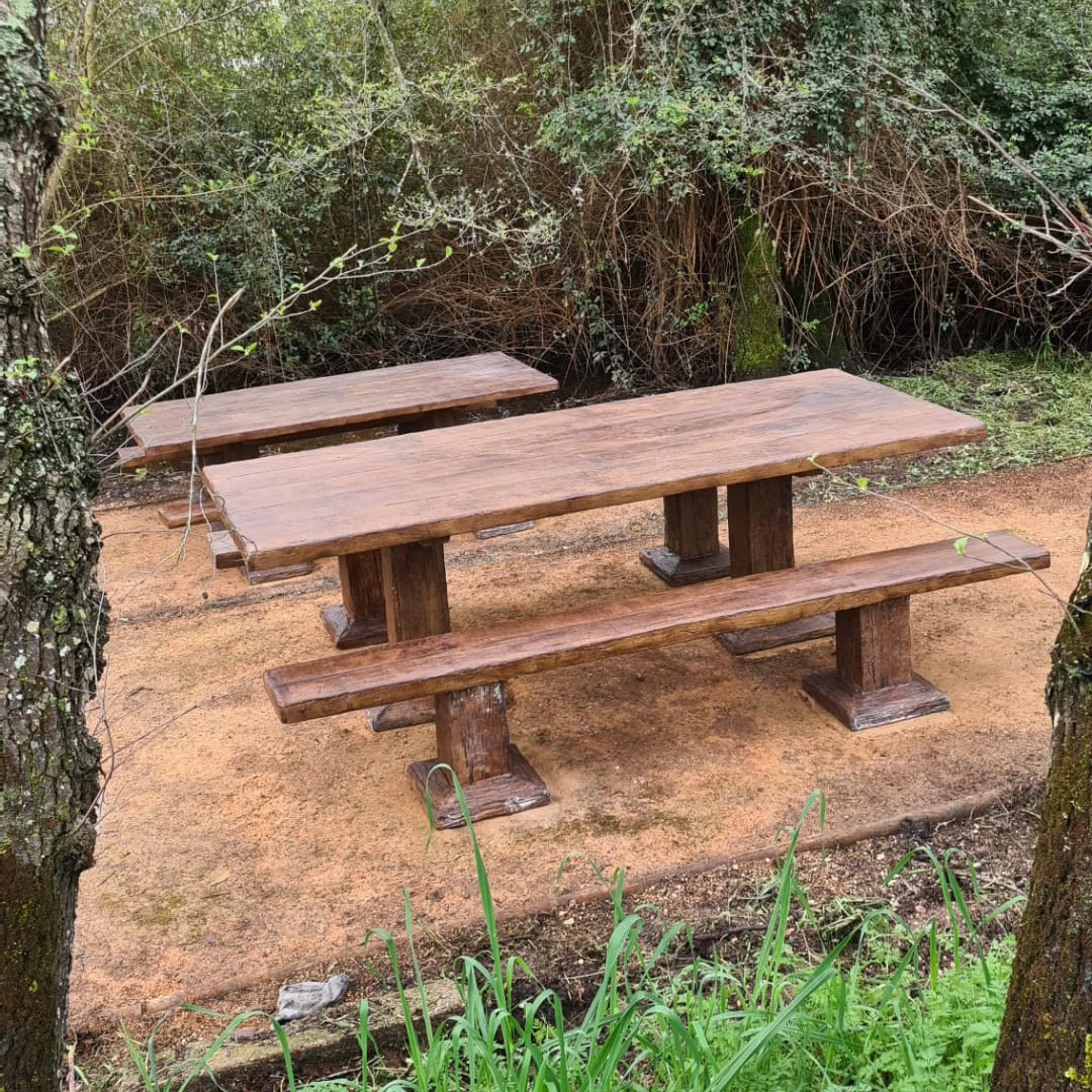 Ces éléments sont composés de 2 pieds et du plateau ou de l'assise, tous avec une texture de bois semi-rugueux, rappelant les meubles typiques d'autres générations et intégrant l'esprit rustique de l'époque partout où ils se trouvent.